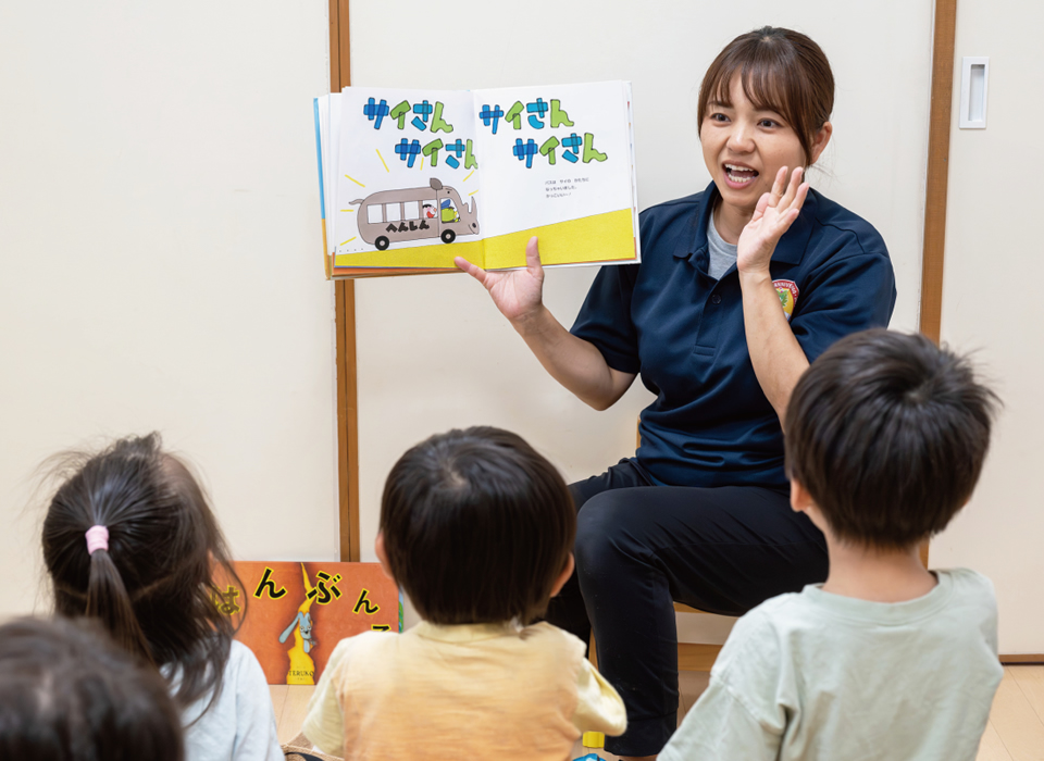 長く歯科衛生士をしていましたが、障がい者歯科診療に携わる中で、通所施設や入所施設の仕事に興味を持ちました。あづみ園を選んだのは、勤務時間が理想的で、4人の子育てをしながら働けることに魅力を感じたからです。初めはパートで、仕事をしながら通信教育で保育士資格を取り、2021年10月に正職員になりました。仕事、家庭、勉強と大変でしたが、周りの理解と支えもあってチャレンジすることができました。保育士として子どもたちの世界が広がるきっかけになれること、成長を見守れることに、やりがいを感じています。